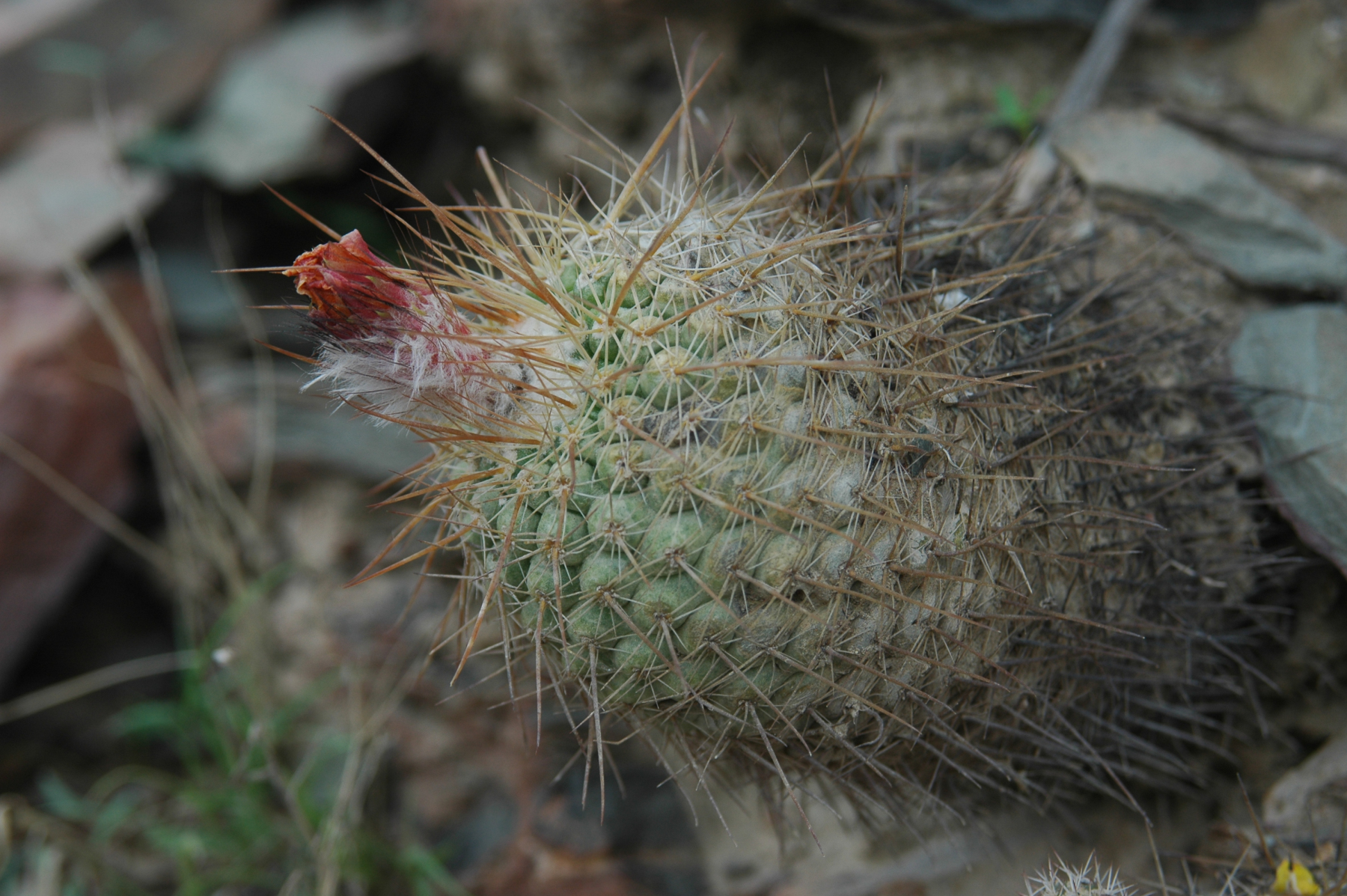 Pflanzen kugelig bis halbzylindrisch, bis 10 cm hoch und 6 cm dick. Bis 7 Randdornen 5 mm lang, weiß bis hellbräunlich. 4 Mitteldornen, kräftiger, nach oben gespreizt, bis 1 cm lang, gelbbraun, ein Mitteldorn sehr kräftig, bis 2 cm lang, gerade. Blüten gelborange, bis ca. 3,5 cm im Durchmesser.Verbreitung: