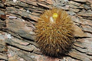 Stacheln hellgelb bis hellbraun; Mittelstachel krallenartig gekrümmt, ohne Haken am Ende;