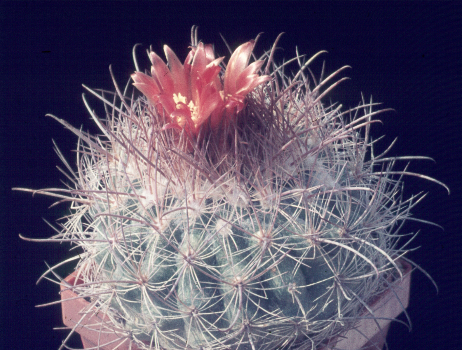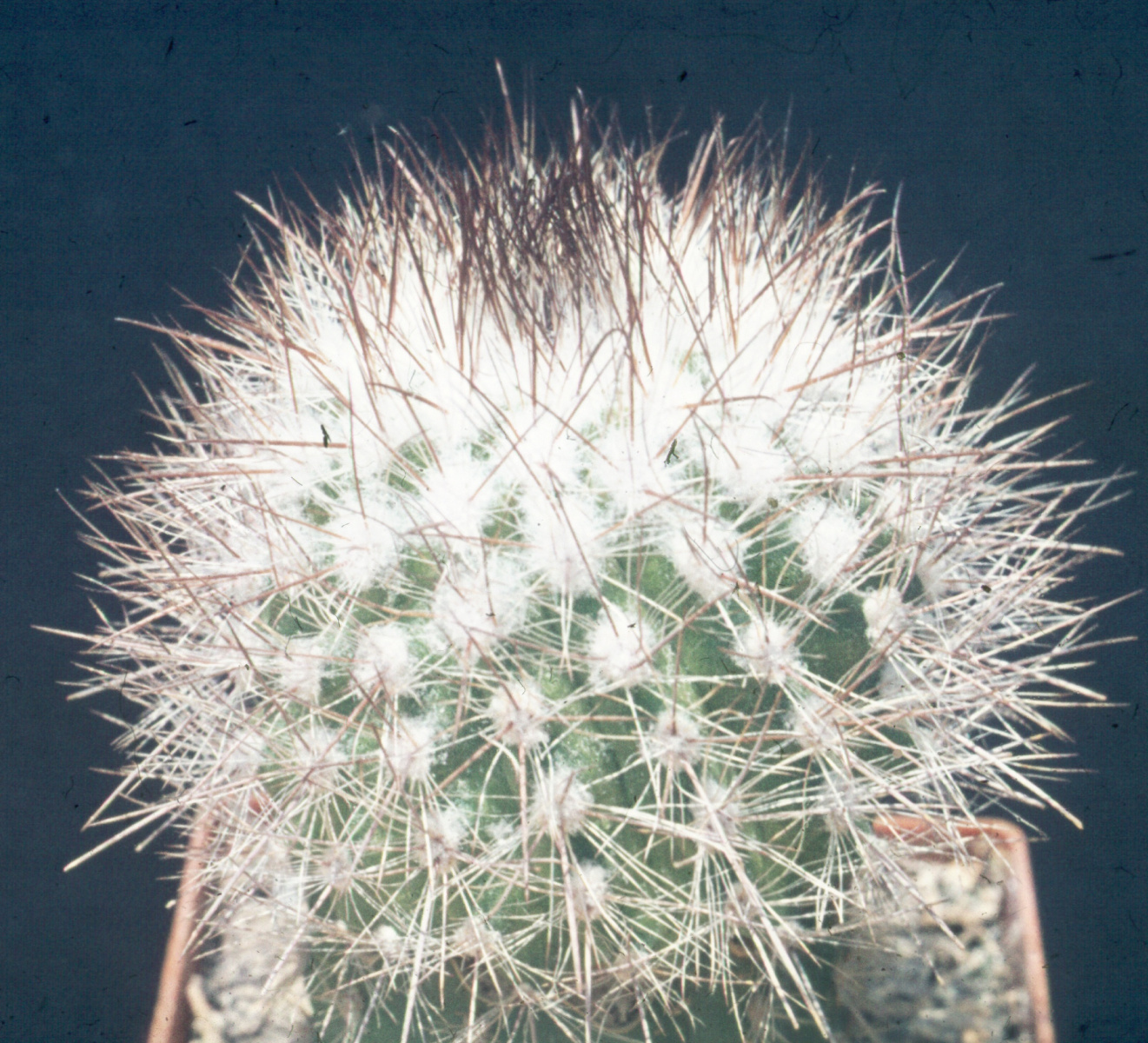 Randstacheln ca. 25, nadelförmig, seitlich miteinander verflochten, Mittelstacheln typisch 4 bis ca. 2cm lang, über Kreuz stehend;